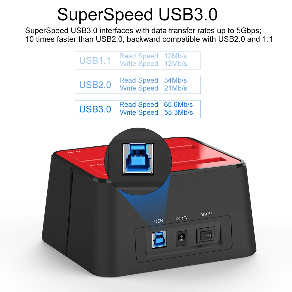 3.5"2.5"SATA Double Dock HDD Docking Station USB3.0 to SATA External Hard Drive Station Dual Bay 8TB HDD Enclosure Offline Clone
